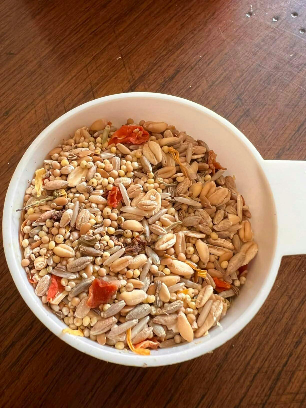 Hand-crafted with calming herbs like chamomile and calendula, along with golden grains, sun-kissed seeds, and bright orange vegetables, this nutrient-dense blend provides naturally occurring key nutrients, including vitamin A, potassium, omega-3 fatty acids, and antioxidants to support eye health, nervous system balance, and immune function. Blissful Balance is ideal for curious parrots who thrive on calm, steady energy throughout the day.